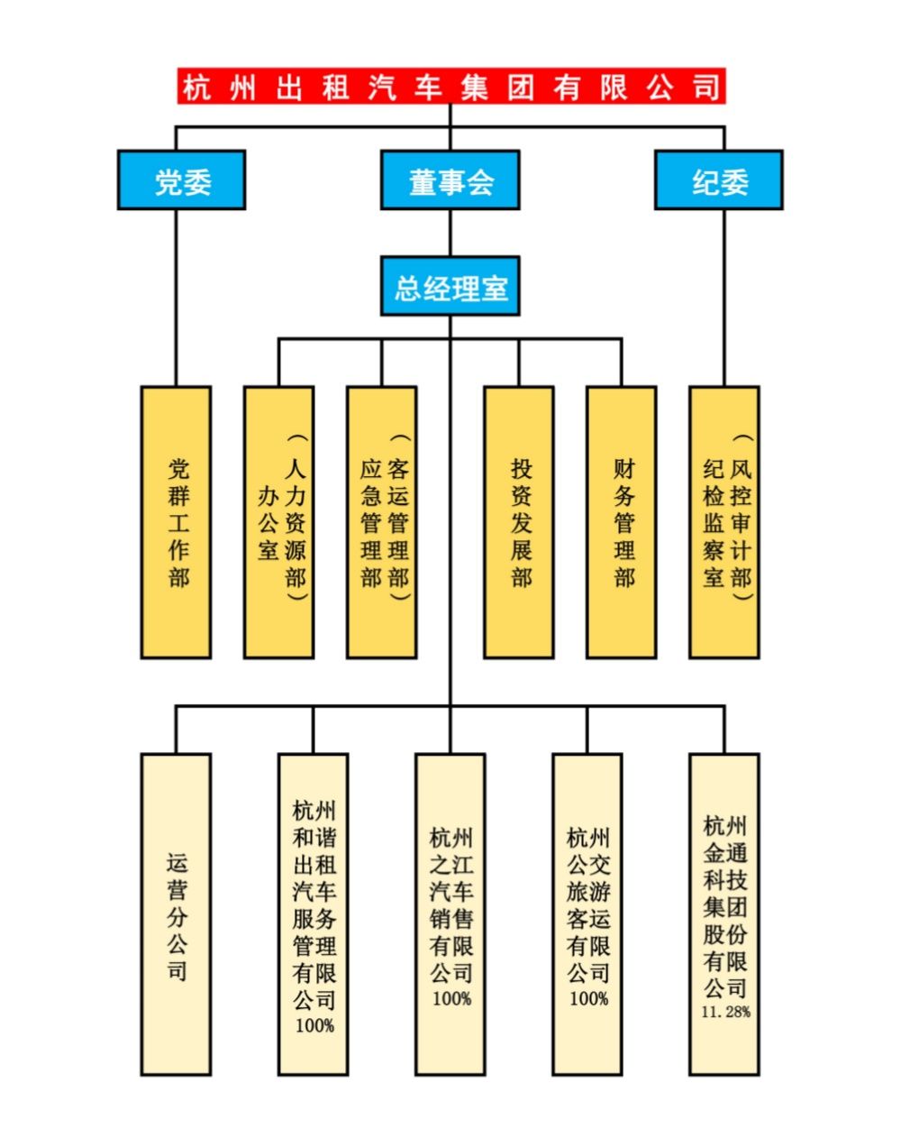 公司設(shè)6個管理部門,下轄運營分公司、之江銷售、和諧服務(wù)、公交旅游等四家分(子)公司,參股金通科技公司。